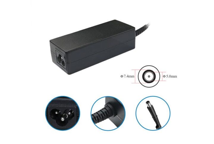 Alimentatore notebook da 65W, con uscita di 18,5V e 3,5A, compatibile con dispositivi HP. Dotato di connettore interno da 1,7 mm e connettore esterno da 4,8 mm.
