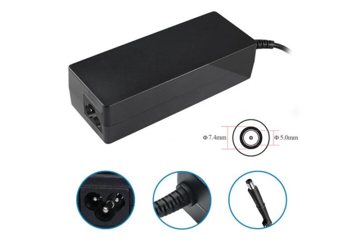 Alimentatore compatibile per notebook con potenza di 90W, tensione di 19,5V e corrente di 4,62A. Dotato di connettore interno di 5mm e connettore esterno di 7,4mm, ideale per dispositivi Dell.