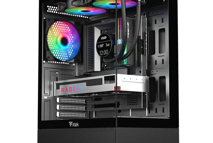 • Gaming Tower, ATX, 12cm ARGB fan, Side & Front Panel Temp GlassItek SHOWBUI 33 è stato progettato per soddisfare le richieste degli utenti che hanno bisogno di estetica, e facilità di assemblaggio in dimensioni ridotte ma soprattutto di un ottimo rapporto qualità/prezzo. La paratia frontale e laterale sono in vetro temperato per mostrare le componenti all”interno entrambe con apertura/chiusura ad incastro, senza viti! Il vano che ospita l”alimentatore e i drive è tutto completamente traforato e separato rispetto al resto del cabinet dove è possibile installare schede video di lunghezza fino a 300mm, dissipatori alti 165mm, liquid cooling fino a 240mm, diverse ventole aggiuntive e il cable management è di 25mm. In dotazione è presente una ventola ARGB posizionata sul retro collegata ad un comodo HUB per la gestione di ulteriori ventole e LED ARGB. Nella parte superiore troviamo i jack audio, 3 porte USB di cui una 3.0. Design Lunghezza massima PSU 16 cm lunghezza massima scheda grafica 30 cm Altezza massima dissipatori CPU 16,5 cm Gestione dei cavi ottimizzata Sì Filtro anti polvere Sì Pannello(i) di vetro temprato Sì posizione delle illuminazioni Ventole colore d”illuminazione Blu, Verde, Rosso Illuminazione Sì numero di slot espansivi 7 Numero di attacchi da 2.5″ 2 Numero di vani per drive 3.5″ 1 Fattore di forma scheda madre supportato ATX, micro ATX, Mini-ITX Colore del prodotto Bianco Tipo PC Fattore di forma Tower Alimentazione Posizione alimentazione Fondo Fonte di alimentazione inclusa No Connettività Quantità di porte USB 3.2 Gen 1 (3.1 Gen 1) di tipo A 1 Quantità porte USB 2.0 2 Raffreddamento Dimensioni del radiatore superiore supportate 240 mm capacità raffreddamento liquidi Sì Diametri delle ventole superiori supportati 120 mm Numero massimo di ventole superiori 2 Rear fans installed 1x 120 mm Archiviazione Dimensioni di hard disk drive supportati 2.5,3.5″ Dimensioni e peso Spessore del materiale 0,6 mm Altezza 487 mm Profondità 346 mm Larghezza 212 mm